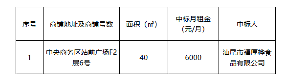 汕尾火車站站前廣場商鋪招租結(jié)果公告